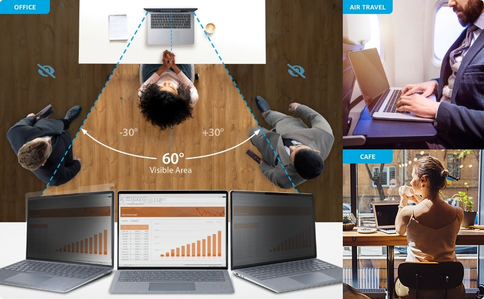 Use a privacy filter on your MS Surface Pro screen to protect sensitive and confidential data from being seen or captured by unwanted viewers. Our privacy screens feature Microlouver technology which obscures the view outside a 60-degree viewing angle. The ideal solution for keeping your data private and preventing visual eavesdropping in public spaces or when traveling.