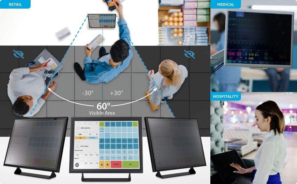 Use a privacy filter on your desktop monitor to protect sensitive and confidential data from being seen or captured by unwanted viewers. Our privacy screens feature Microlouver technology which obscures the view outside a 60-degree viewing angle. The ideal solution for keeping your data private and preventing visual eavesdropping in offices, healthcare facilities, government institutions or other public environments.