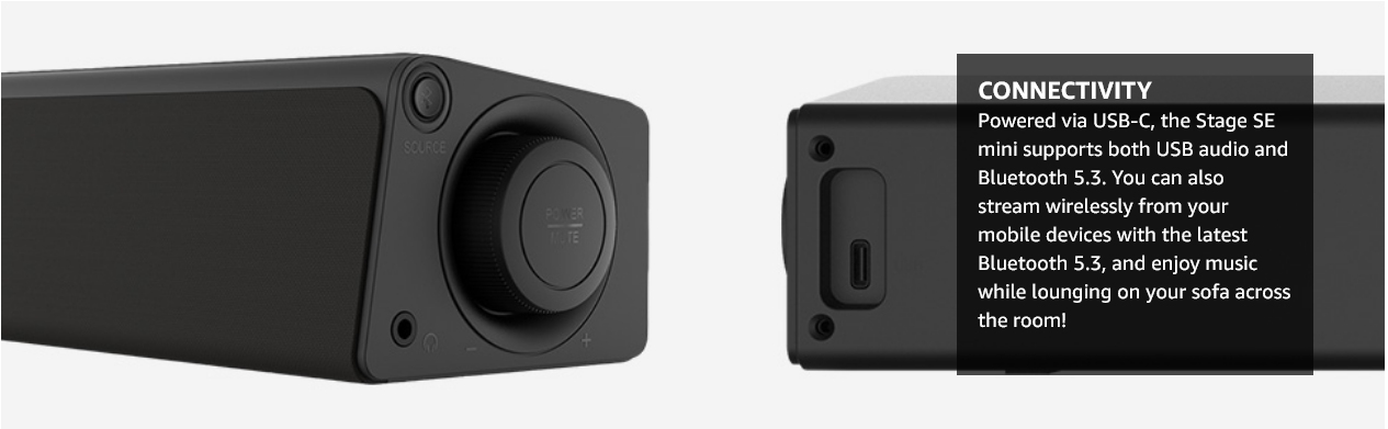 Upgrade your audio with Creative Stage SE mini, the compact, under-monitor soundbar is designed to deliver a powerful audio punch without breaking the bank.