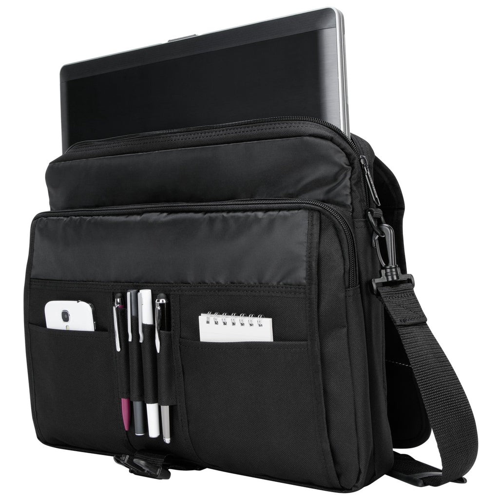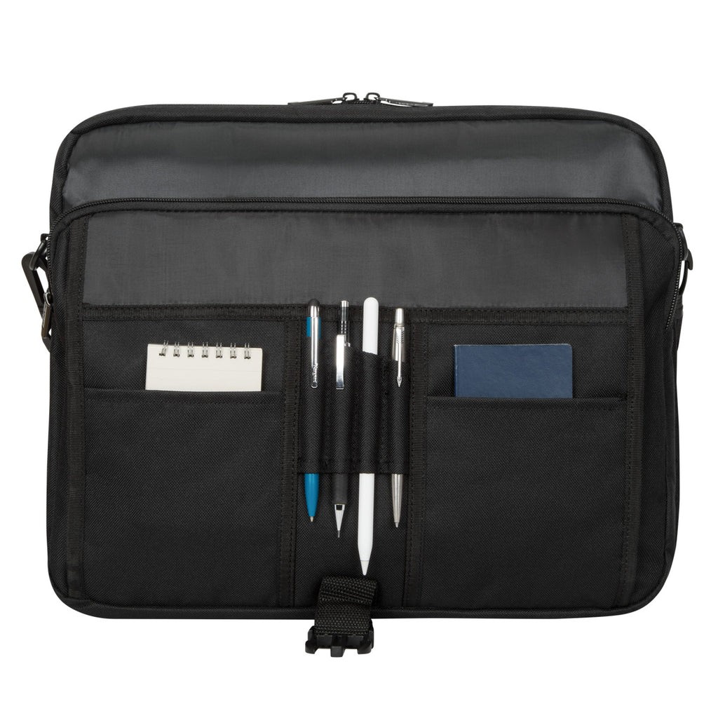 The Targus Messenger Laptop Case fits most laptops with up to 15.6” screens. Don’t be fooled by its lightweight design. A protective padded laptop compartment offers extra protection and the front load workstation includes organization essentials such as media storage, pen loops and laptop accessory compartments. Two separate zippered file sections are large enough to accommodate files and magazines. Mobility is made easy with the easy-grip top handle and adjustable padded shoulder strap. This Messenger laptop Case offers great flexibility – a simple design that’s functional.