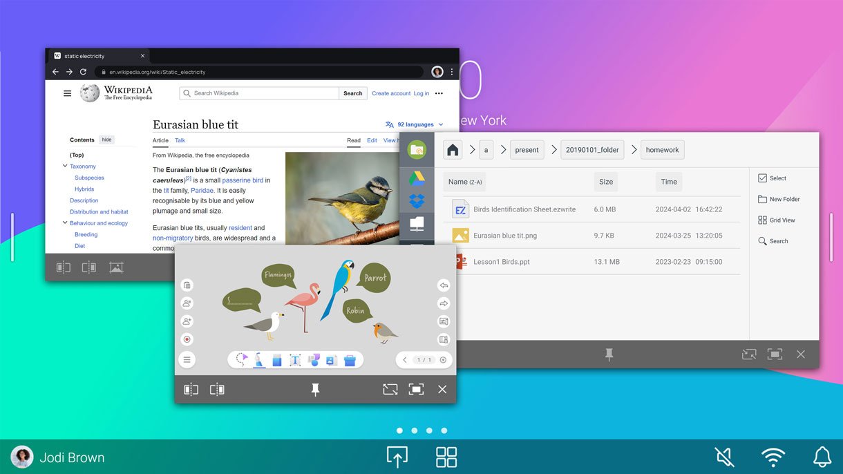 Whiteboard while using other apps on the same screen. Use multi-window mode and have up to 6 apps open for more dynamic lessons.