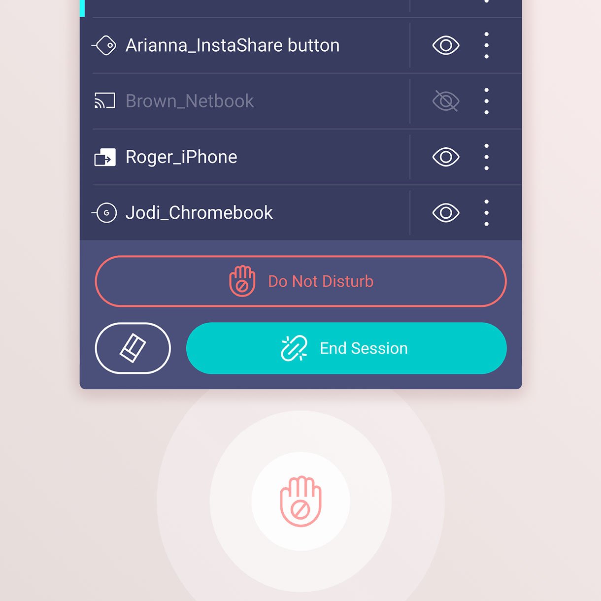 Even with multiple students sharing, it’s easy to take control of the session on InstaShare 2. You can select which screens to show or hide, decline sharing requests, and even block inappropriate content with AI.