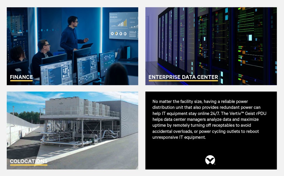 The Vertiv Geist rPDU can help ensure your critical IT equipment remains powered even in the event of a power failure. This rPDU automatically switches from the primary power source to the secondary power source in 4-8 milliseconds, saving your important business operations from harmful and costly disruptions caused by power loss.