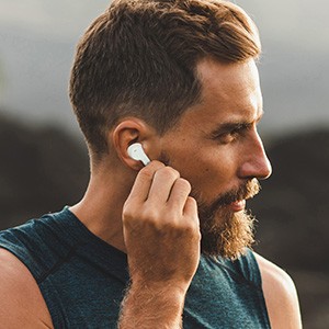 LIGHWEIGHT AND IPX5Each earbud weighs 5.3g / 0.18 oz and the charging case weighs 41 /1.44 oz. They come with IPX5 rating, so you can bring them out even on a rainy run or to a sweaty gym session. |