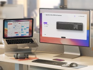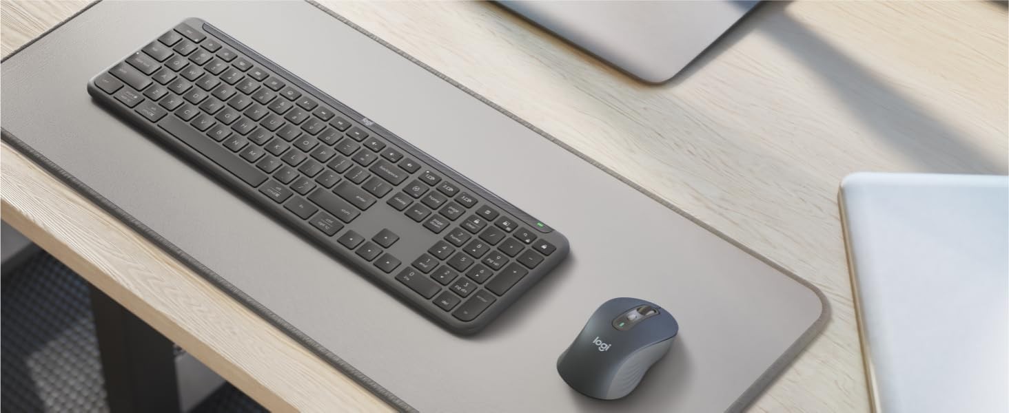 Convenient preset shortcuts for the keyboard and mouse are customizable with Logi Options+, available for download on Windows and macOS.