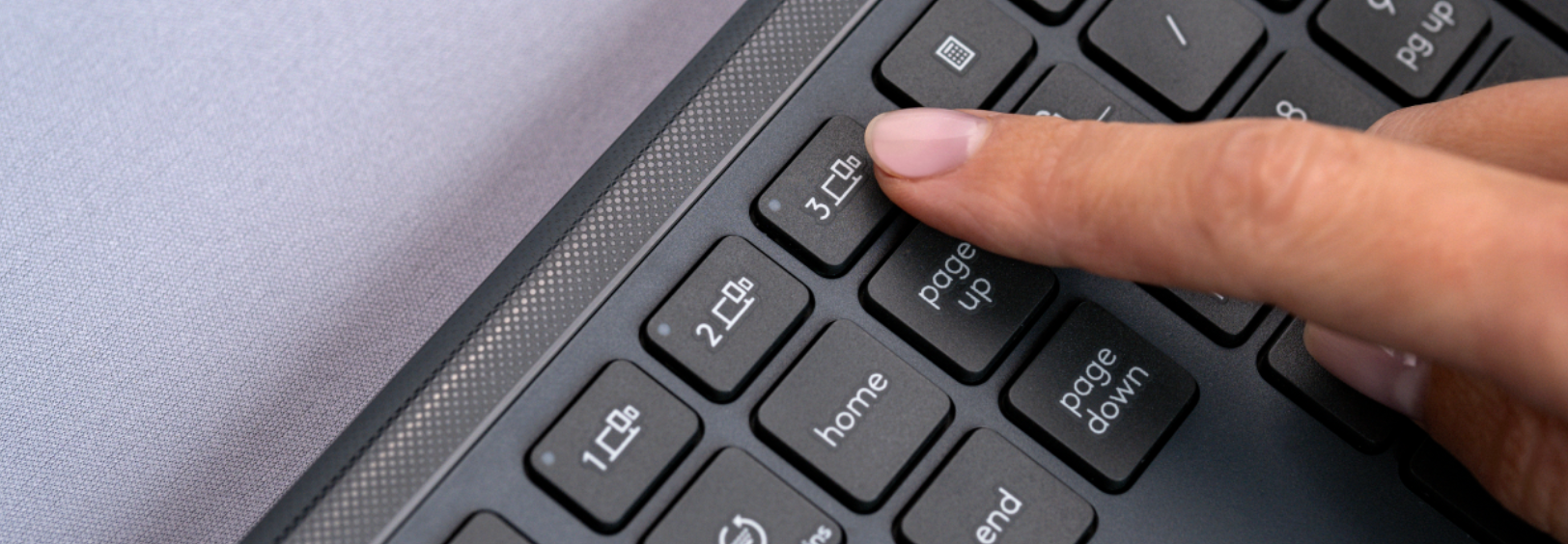 One mouse and keyboard to move seamlessly between your home desktop and your work laptop*. Connect them via Bluetooth or Logi Bolt Receiver.