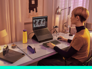 Laptop-like typing made even better with keys shaped for your fingertips and smart illumination on a compact keyboard.