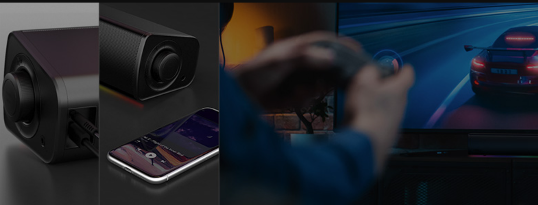 A single USB-C cable* is all you need to bring the Sound Blaster GS3 to life. Delivering both audio and power, reduce any cable clutter, with easy-to-reach buttons and volume control knob on the right side of the soundbar.