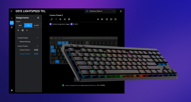 Use G HUB to create a personalized control center and program up to 15 functions per key with KEYCONTROL. Map any key to suit your style of play.