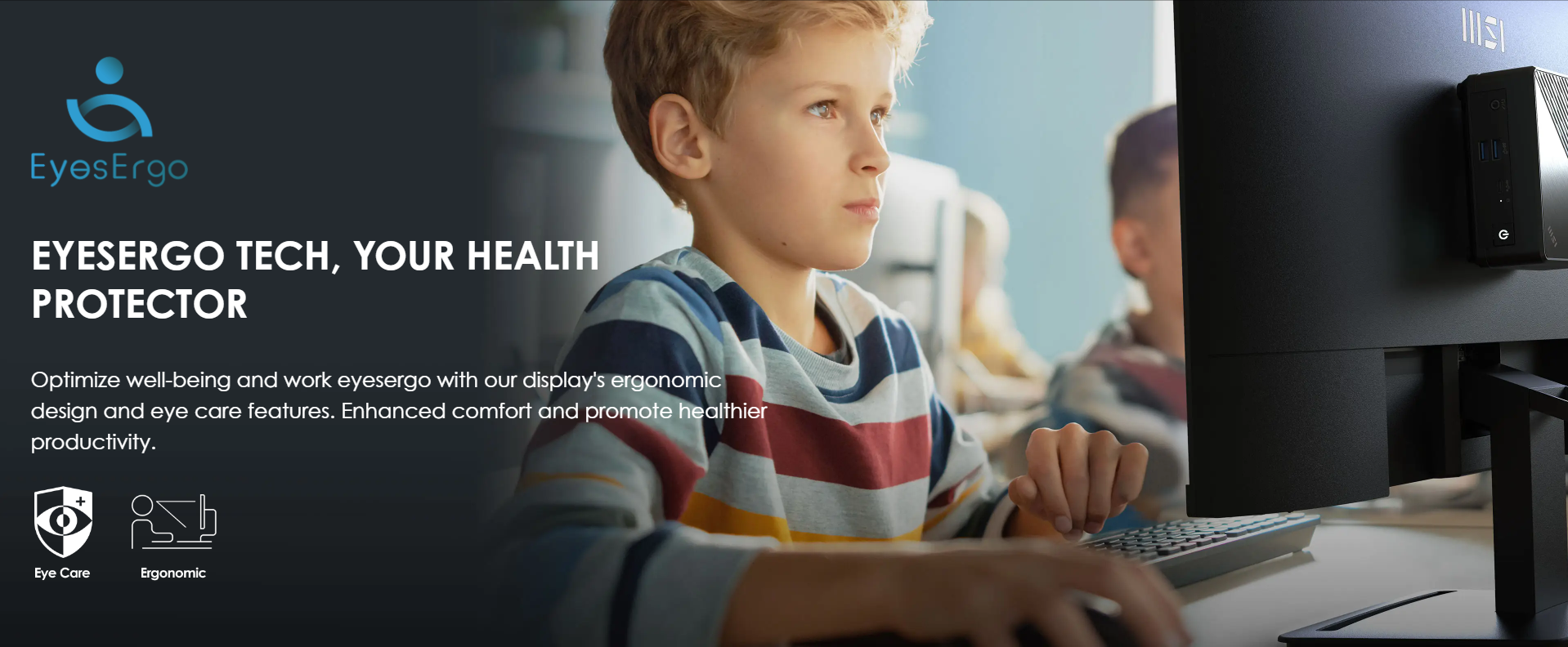 Embrace a broader perspective and boost productivity with the 27-Inch EyesErgo monitor featuring a 100Hz refresh rate. Prioritizing well-being, EyesErgo technology minimizes strain through eye care and ergonomic design. Elevate your visual experience and work efficiency with seamless integration of hardware and software.