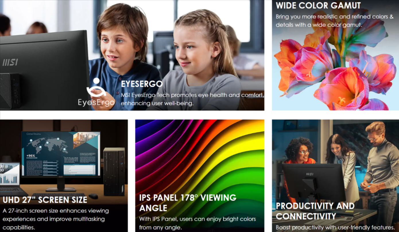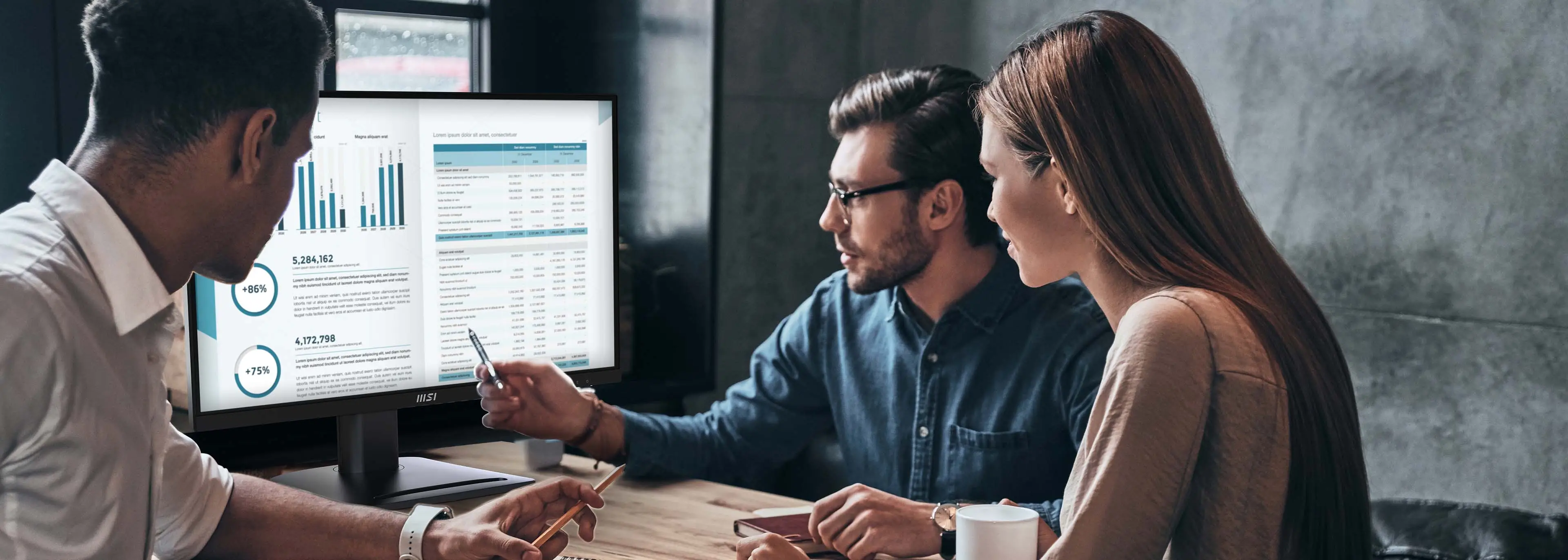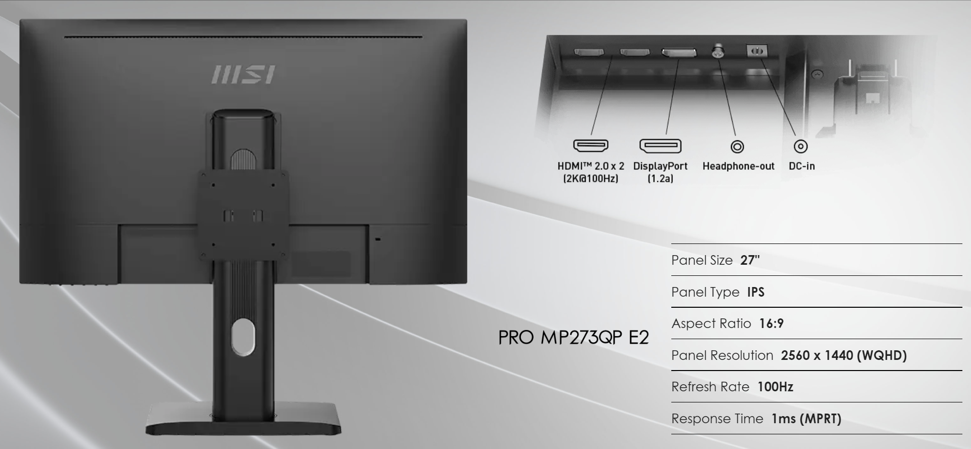 With several practical designs including standard VESA Mount, Built-in Speakers, Stand with an accessory slot and complete I/O ports, the PRO MP273U Series is the caring assistant that boosts your productivity