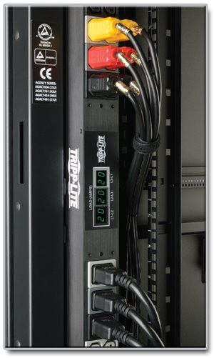 The PDU3MV6H50 is easy to integrate with a wide range of data center and network applications. It can be configured for 0U (vertical) rack installation with the included mounting brackets, and it also supports toolless button-mount vertical installation in compatible rack enclosures. Vertical 0U installation reduces cord clutter and promotes efficient airflow through the rack.