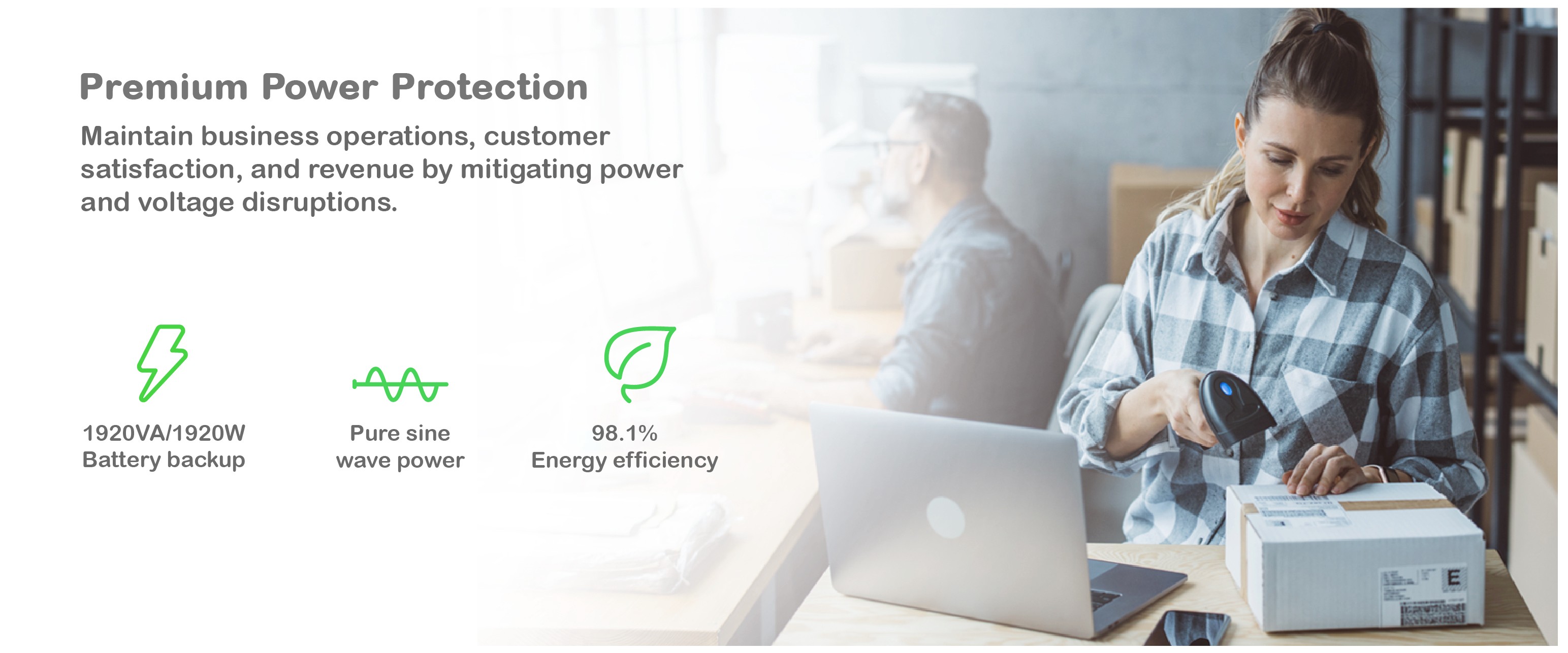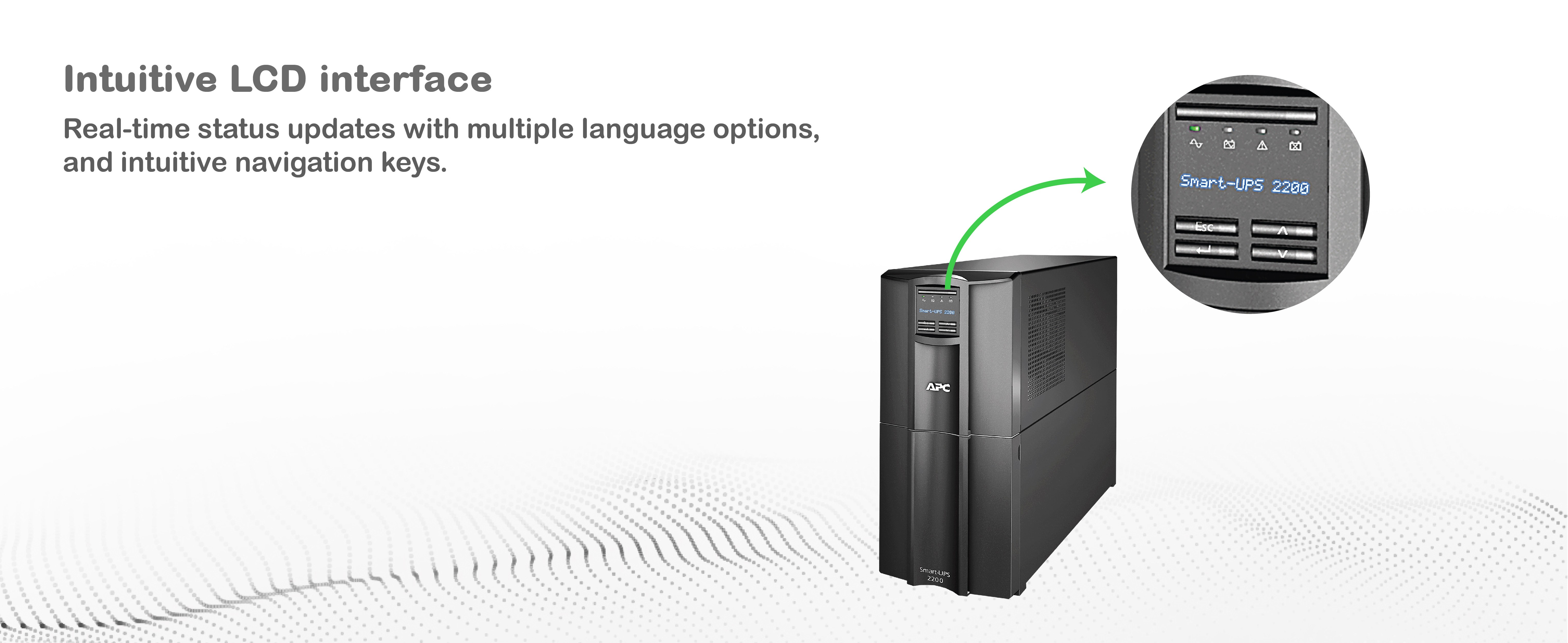 Graphical LCD display Quick, easy-to-read, intuitive LCD provides information about the utility and UPS conditions. |