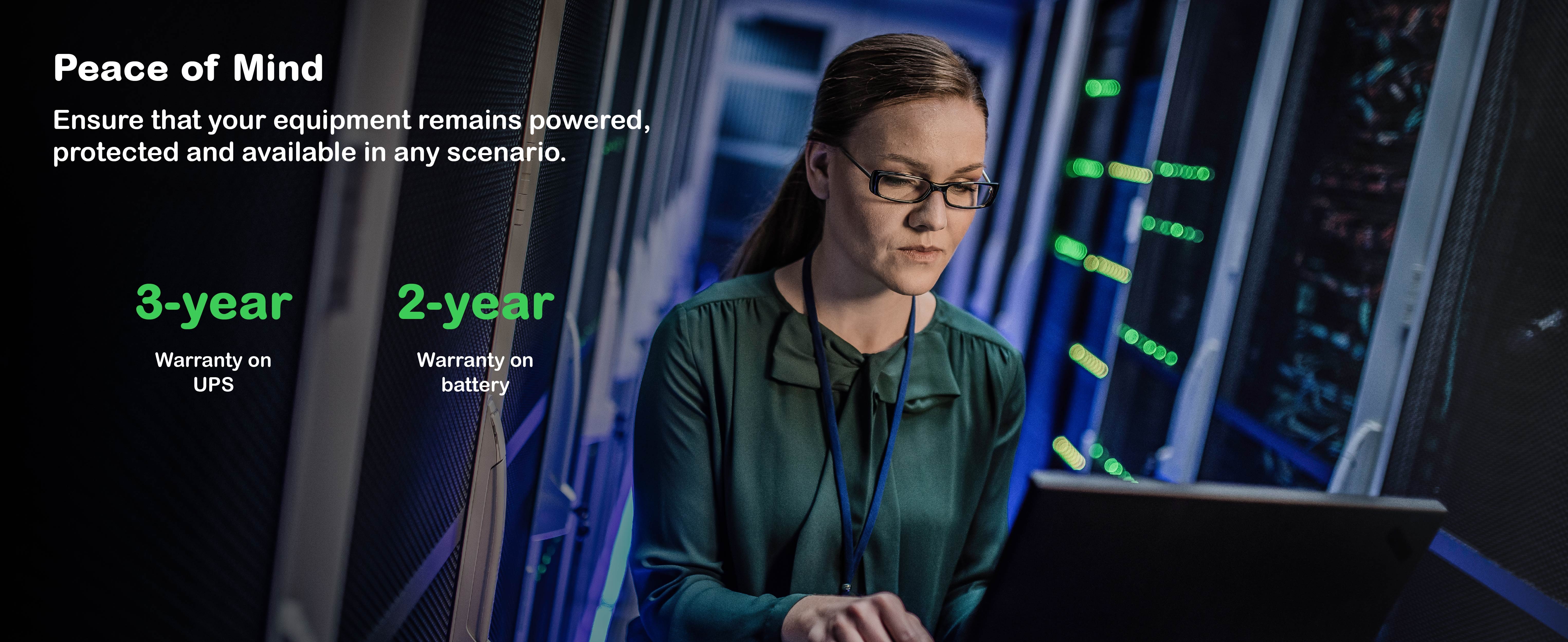 Options for monitoring and managing your UPS include EcoStruxure IT, Network Management Card and PowerChute.