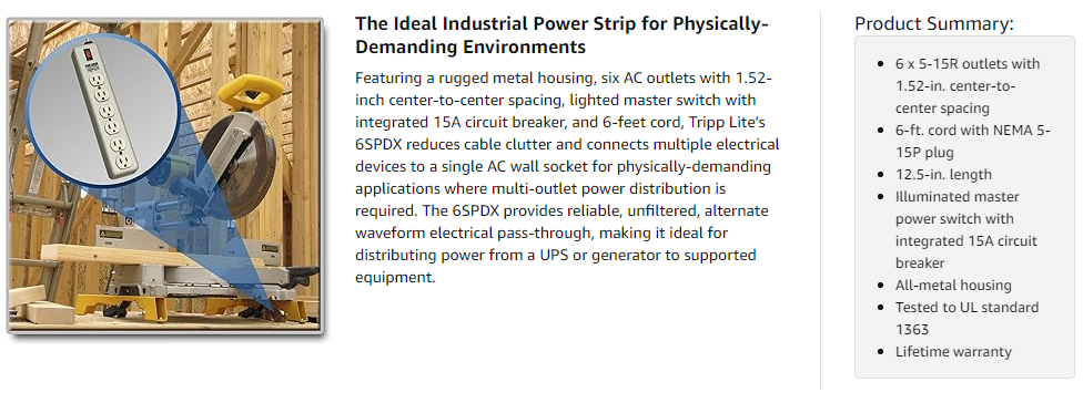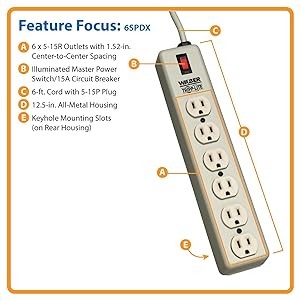Install the 6SPDX far away from its power source and distribute power to previously un-powered areas with its long, 6-feet power cord with NEMA 5-15P plug. The 6SPDX can be mounted using the keyhole mounting slots on the rear housing to save floor space and reduce clutter. The all-metal housing ensures a long life and the ability to withstand even the toughest environments.
