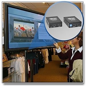 The B126-2A1 extends an HDMI signal up to 200 ft., making it ideal for digital signage applications requiring distance between the video source and monitors, such as retail and point-of-sale displays and trade show presentations. The B126-2A1 allows the video source to be in a secure, remote location for controlled access while still delivering a signal to devices in another area.