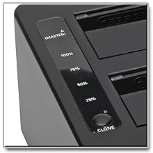 Offline and Online Cloning CapabilityNo host computer is needed to clone hard drives with the U339-002. The offline cloning functionality allows hard drive duplication at the touch of a button. An LED progress bar displays cloning status updates. |