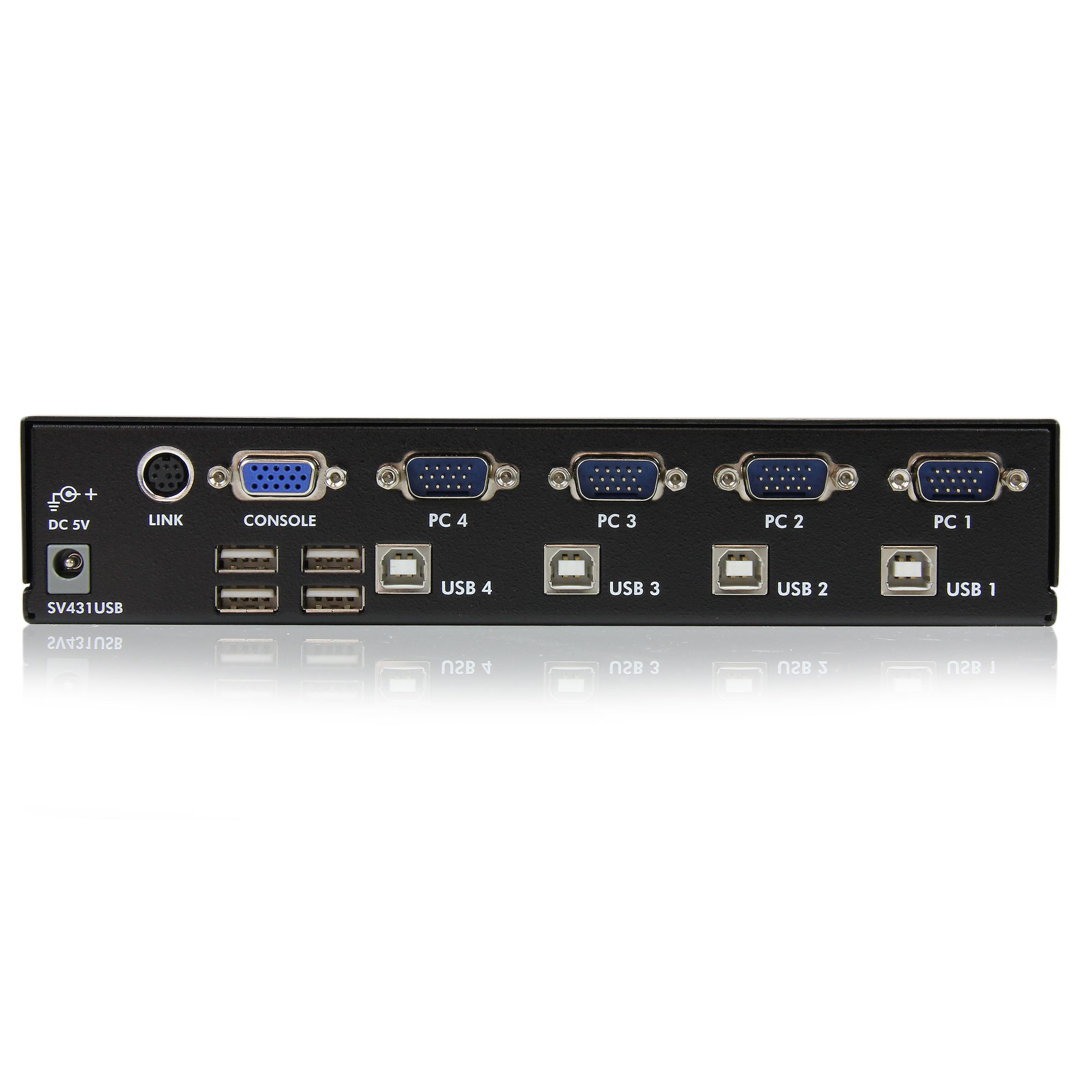 The SV431USB 4 Port rack mountable VGA USB KVM Switch with Hub offers simple control of up to four computers from a single monitor/display and USB peripheral set (keyboard, mouse).