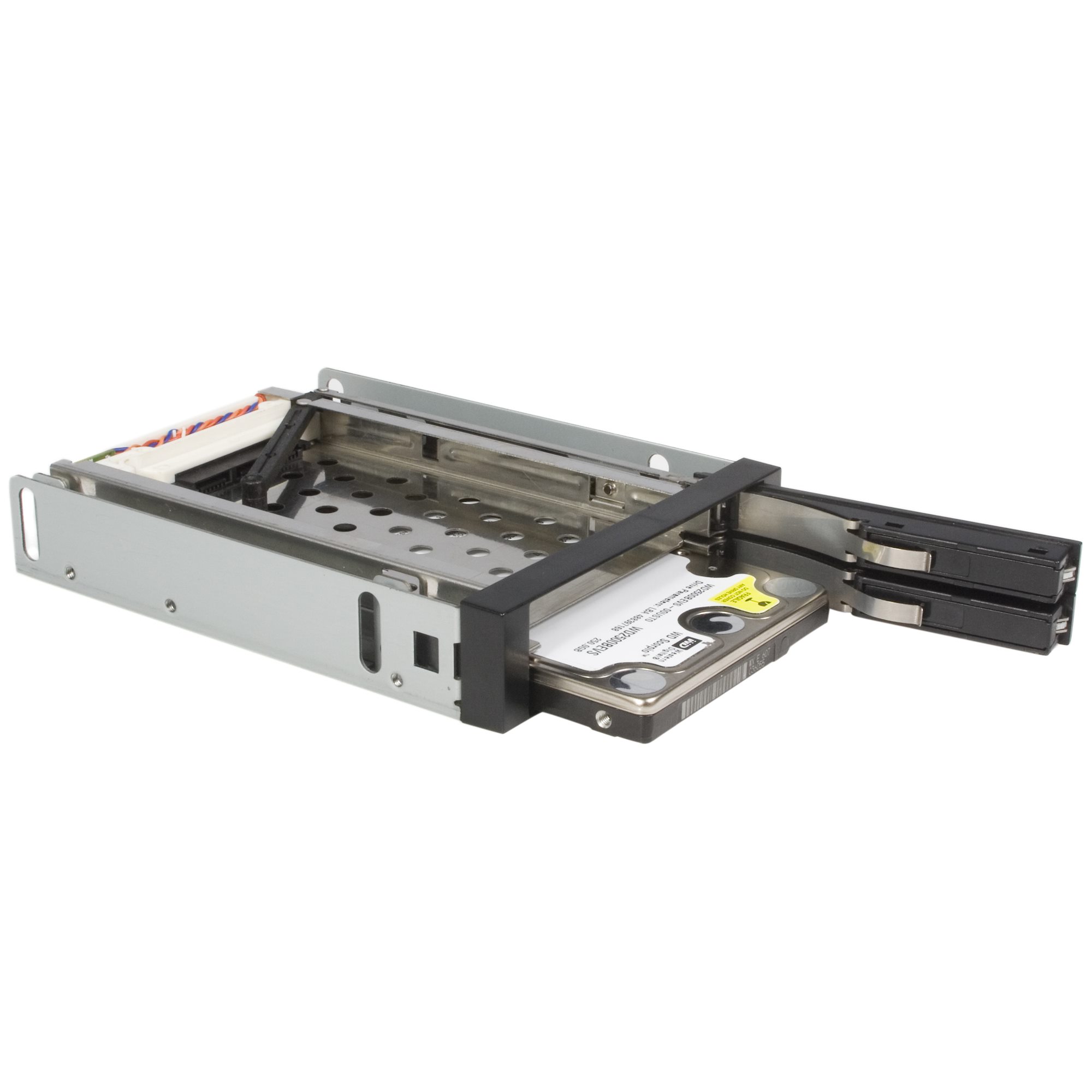 Featuring a convenient "no mounting required /easy eject" feature (like a tape cartridge or floppy disk), the hard drive hot swap bay doesn't require that the drives be installed in a tray - making it the ideal solution for quick and easy drive removals and insertions as part of a system building process, or integration into rackmount systems or industrial environments.