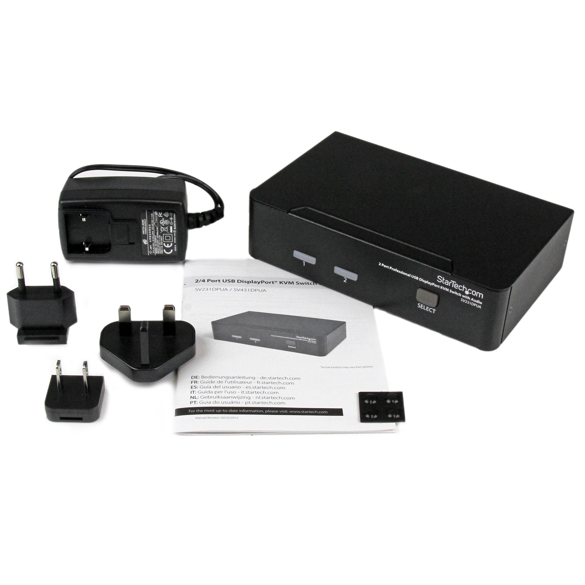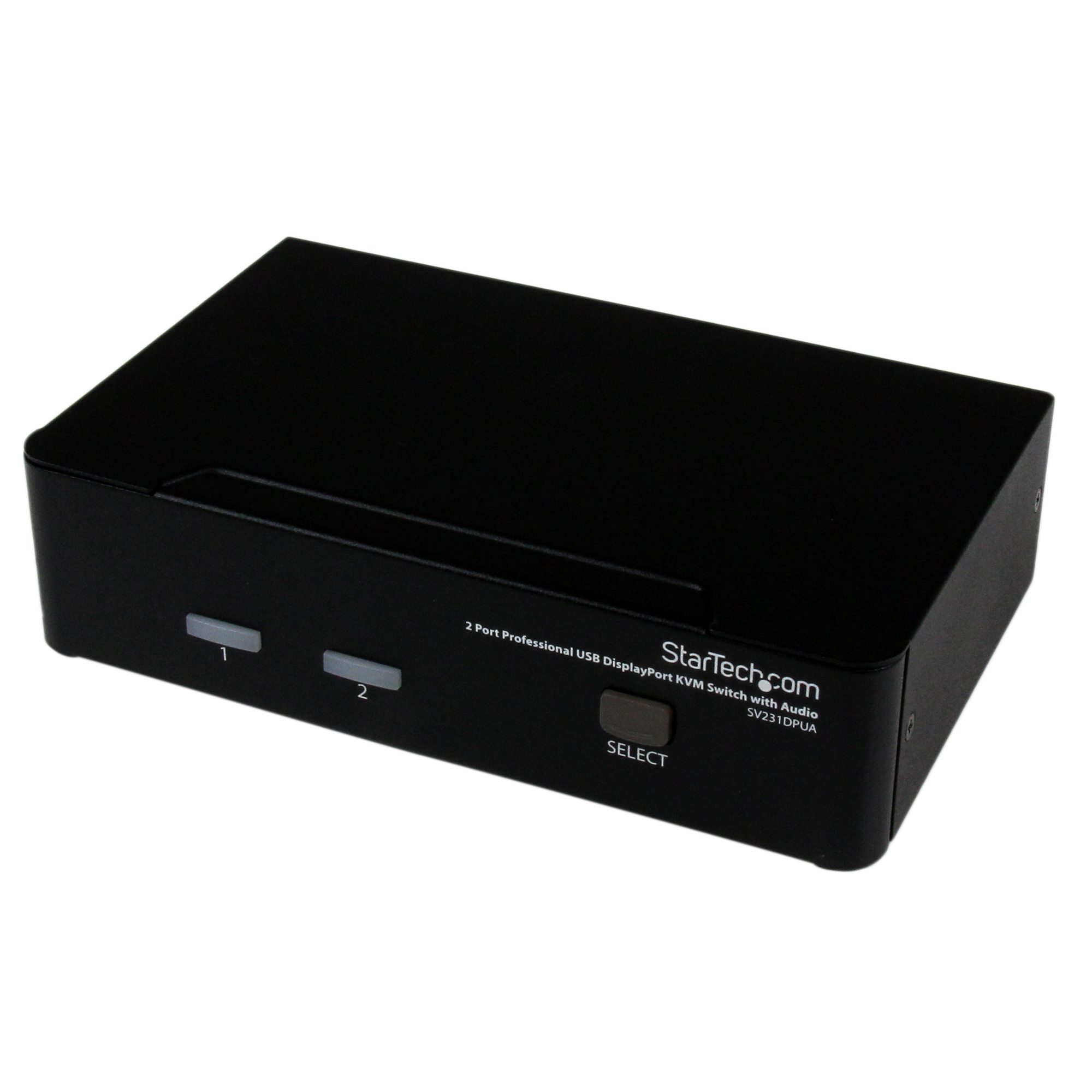 The SV231DPUA 2-Port USB DisplayPort KVM Switch delivers dual computer KVM control, for demanding high definition multimedia applications. Supporting DisplayPort connections with a native resolution of 2560 x 1600, and support for both 7.1 HD digital audio (when connected to supporting displays and sources) and 3.5mm stereo analog audio/mic.