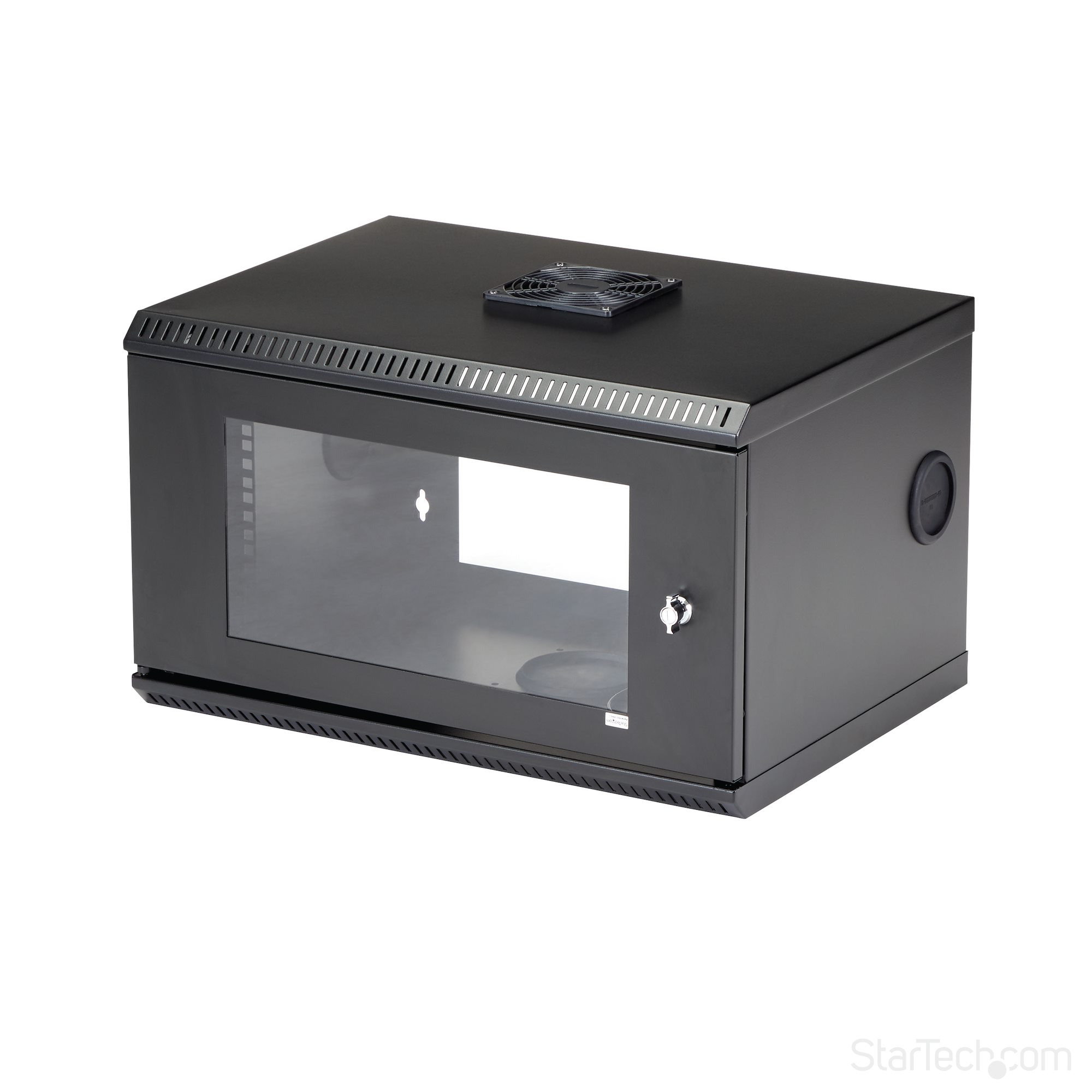 This equipment rack offers 6U of storage space and is designed to accommodate 19-inch (wide) servers, networking and telecom equipment. The rack features a 12cm fan, with ventilation positioned above and below the front panel glass door, helping to keep dust out of the rack while ensuring a cool operating environment for your valuable equipment.