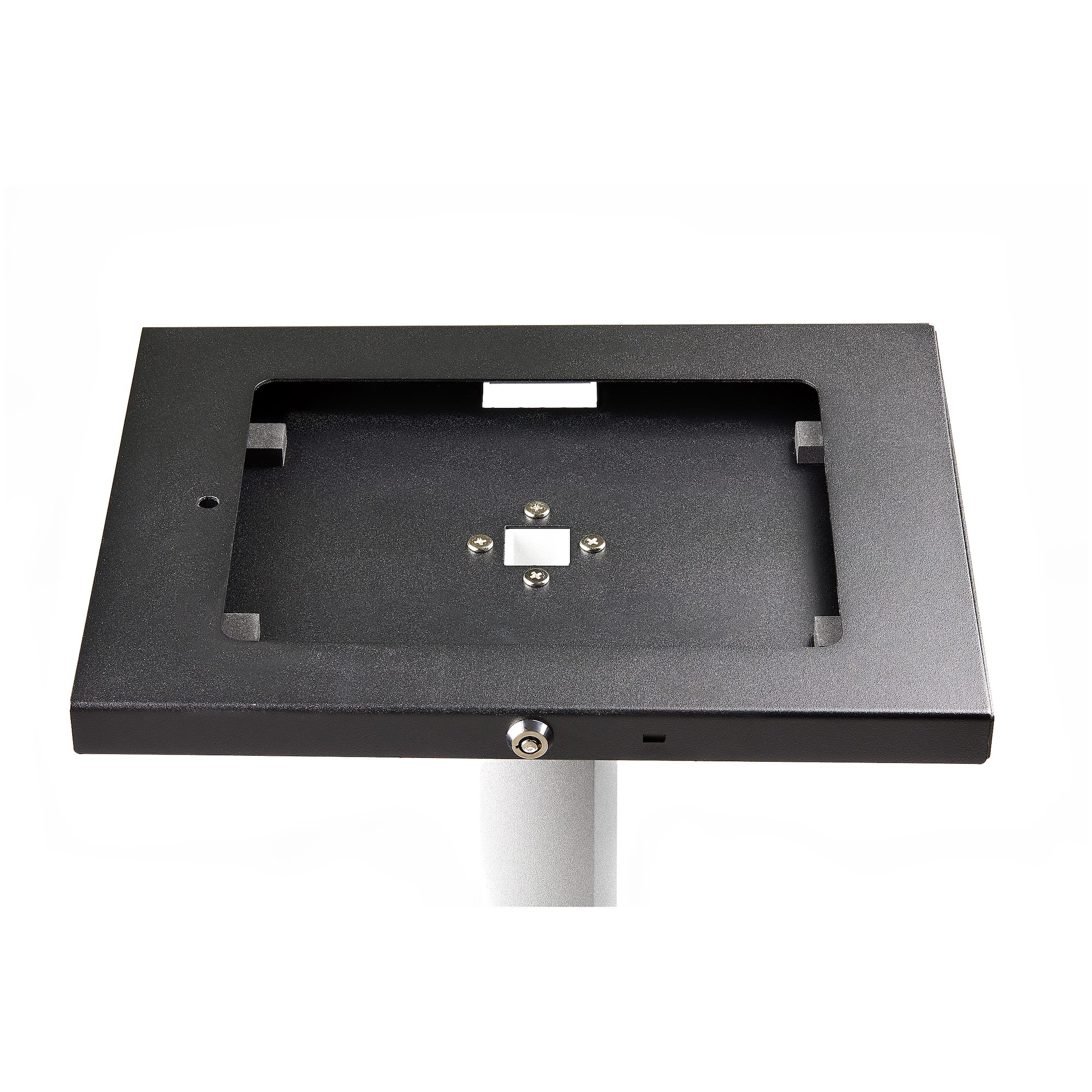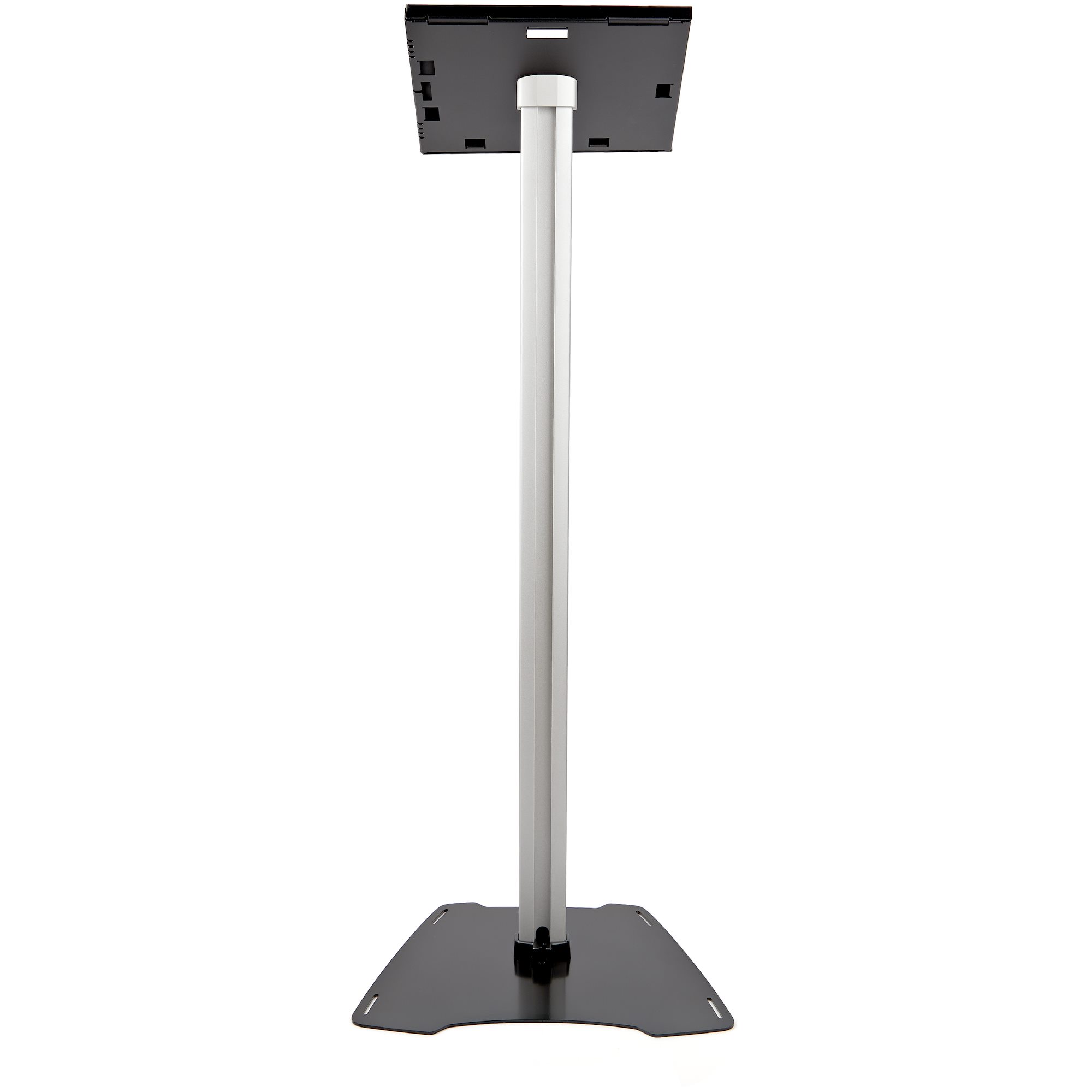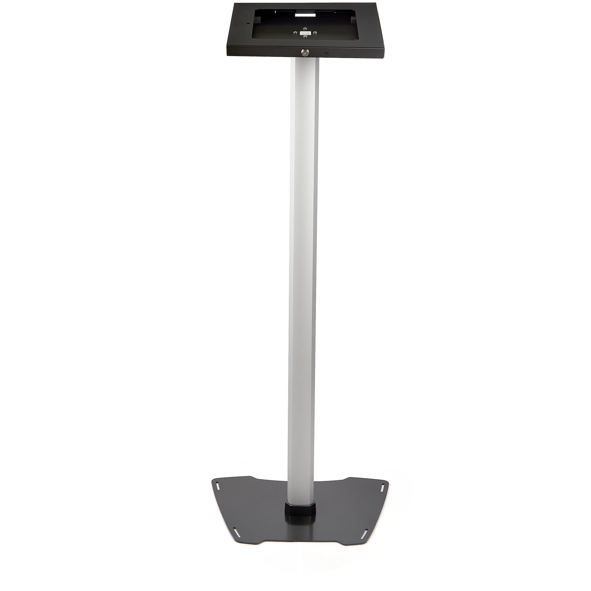 The secure tablet stand features a lockable holder that helps protect your tablet from loss or damage. Plus, you can screw the base of the steel and aluminum stand into the floor, to create a fixed-in-place holder.