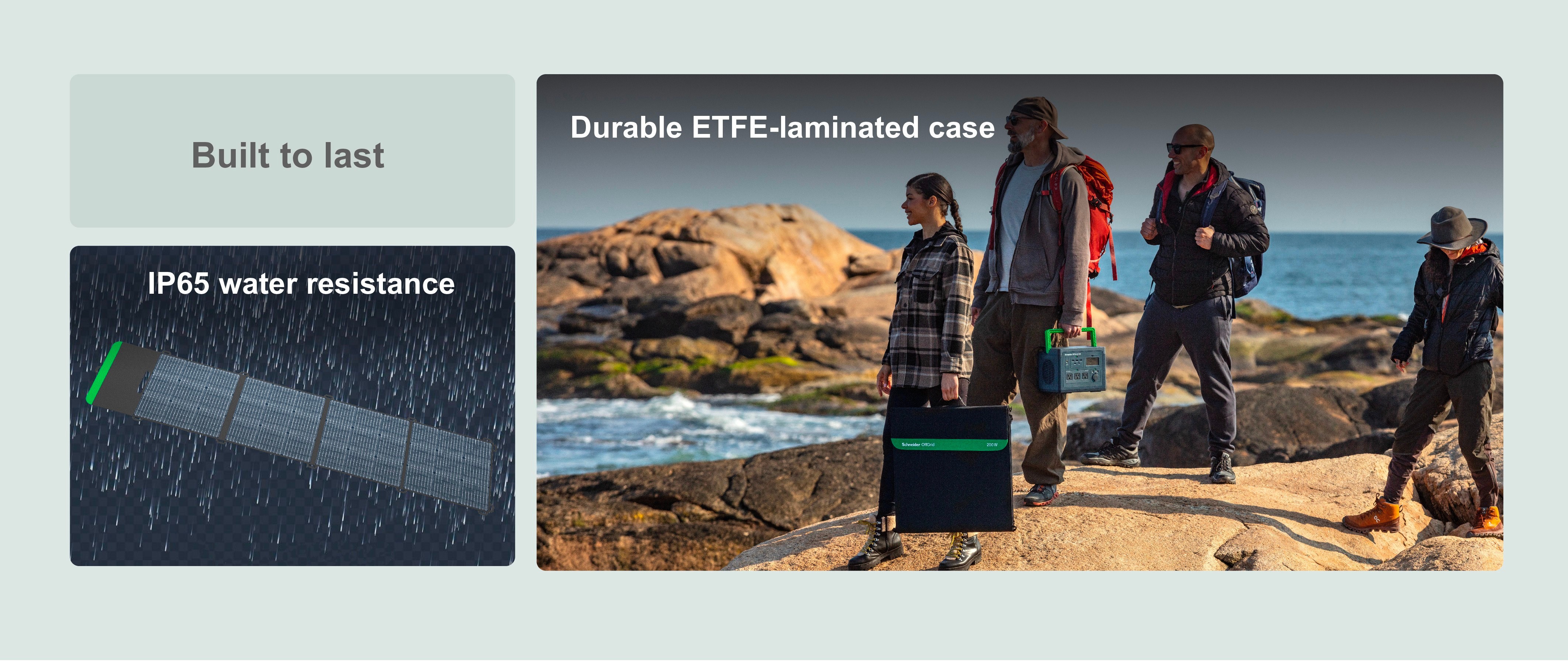 The OffGrid Portable Solar Panel has a water-resistant design with IP65 rating. However, please avoid submerging or exposing the product to prolonged water.