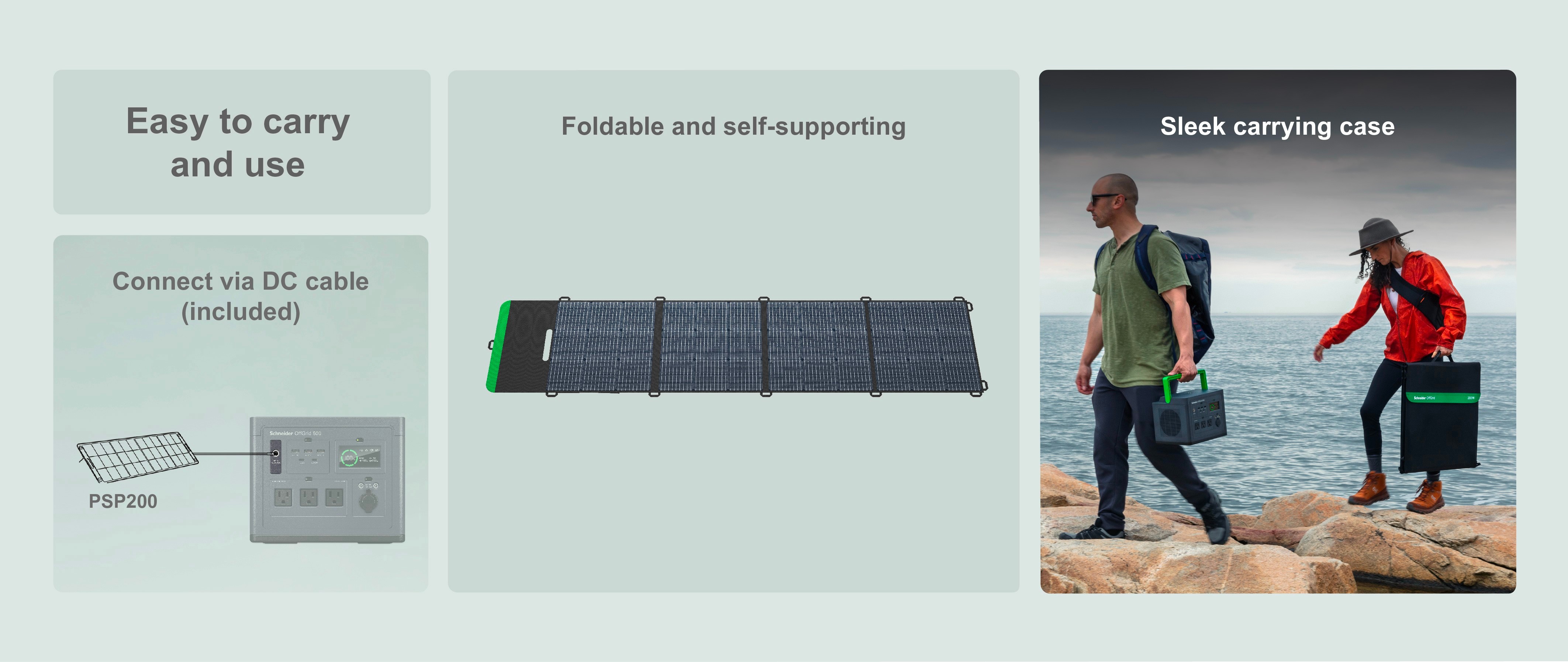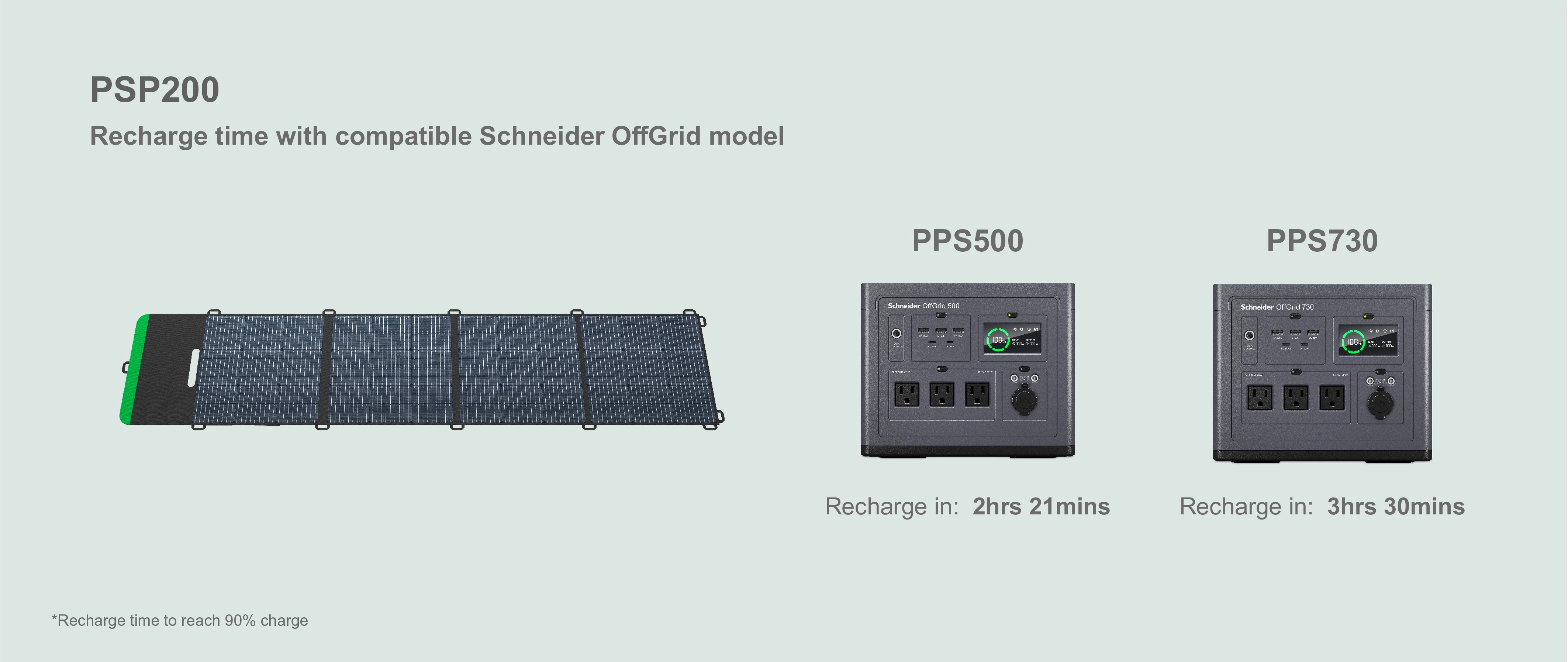 The OffGrid Portable Solar Panel 100W (PSP100) is compatible with OffGrid 330, 500, and 730. The OffGrid Portable Solar Panel 200W (PSP200) is compatible with the OffGrid 500 and 730.