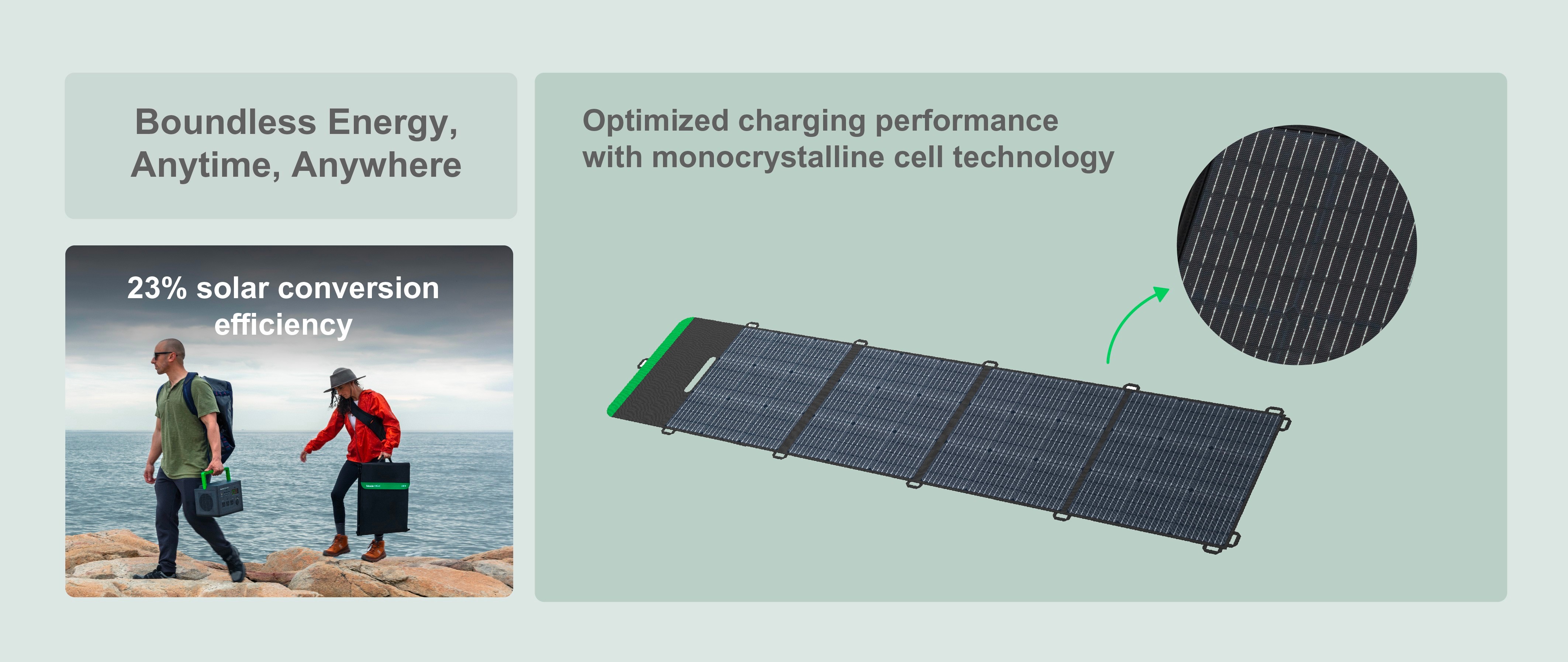 4. Optimized charging performance: Comes with monocrystalline cell technology and boasts a high 23% conversion efficiency