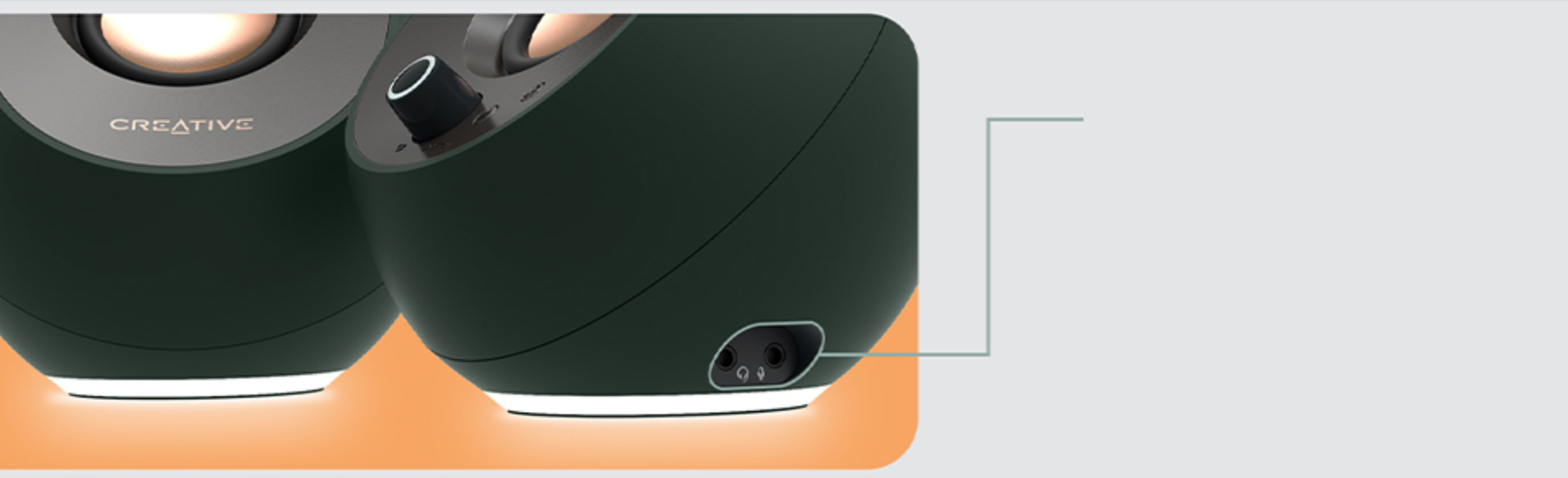 And as is the signature design of the Creative Pebble series, Creative Pebble Pro features the same 45° elevated drivers, specifically angled to direct audio straight to your ears for an immersive and personal listening experience.