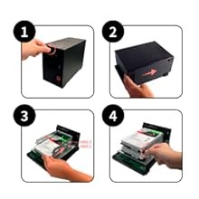 The sliding cover design found on the Drivestor makes opening your NAS easy. The inner hard drive rails and outer cover all use thumb screws making hard drive installation simple and easy without tools.