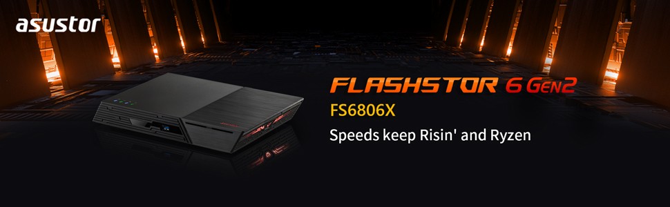 The Flashstor 6 Gen2 series features 10-Gigabit Ethernet, allowing for high-speed transfers when paired with a 10GbE-enabled device and a compatible router or switch.
