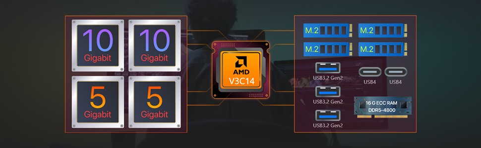 The Lockerstor Gen3 series is ASUSTOR’s fastest NAS ever! The combination of AMD’s Ryzen Embedded SoC, M.2 SSDs using PCIe 4.0, USB4, and dual 10GbE to ensure everything you want to do with your NAS is nothing short of extremely fast. With four M.2 slots for NVMe SSDs and up to ten bays for HDDs, the Lockerstor Gen3 series ensure that you get the best of both speed and capacity.