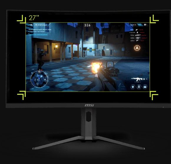 Supports a variety of aspect ratios, allowing for selection between 24.5” and 27” imagery. Choose the size you want at your leisure, and elevate your gaming experience to the utmost