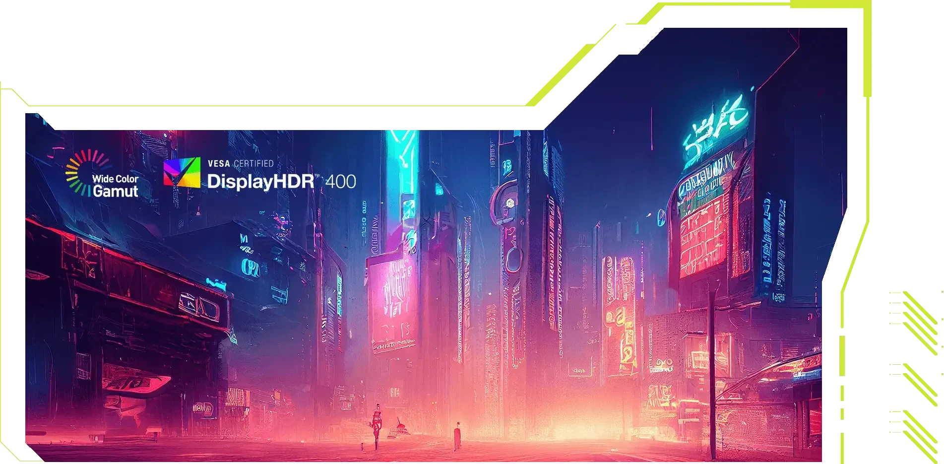 The MSI monitor is certified with VESA DisplayHDR™ 400, ensuring that it produces images with more detail, a wider range of colors, and appearance more similar to what the human eye perceives compared to traditional monitors. It guarantees a superior gaming and multimedia experience by vividly rendering every detail with vibrant colors and exceptional clarity.