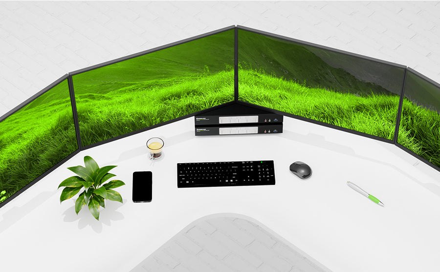 Tackle large projects and double your desktop viewing space by adding a second 4-Port KVMP (GCS1944H). Expand your workstations to accommodate up to four 4K Cinema HDMI enabled monitors.