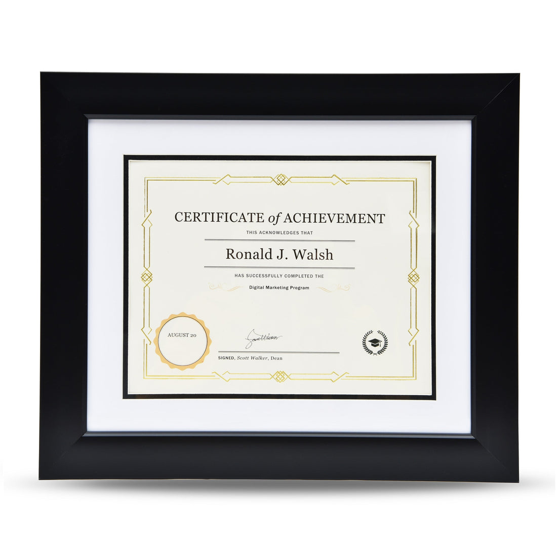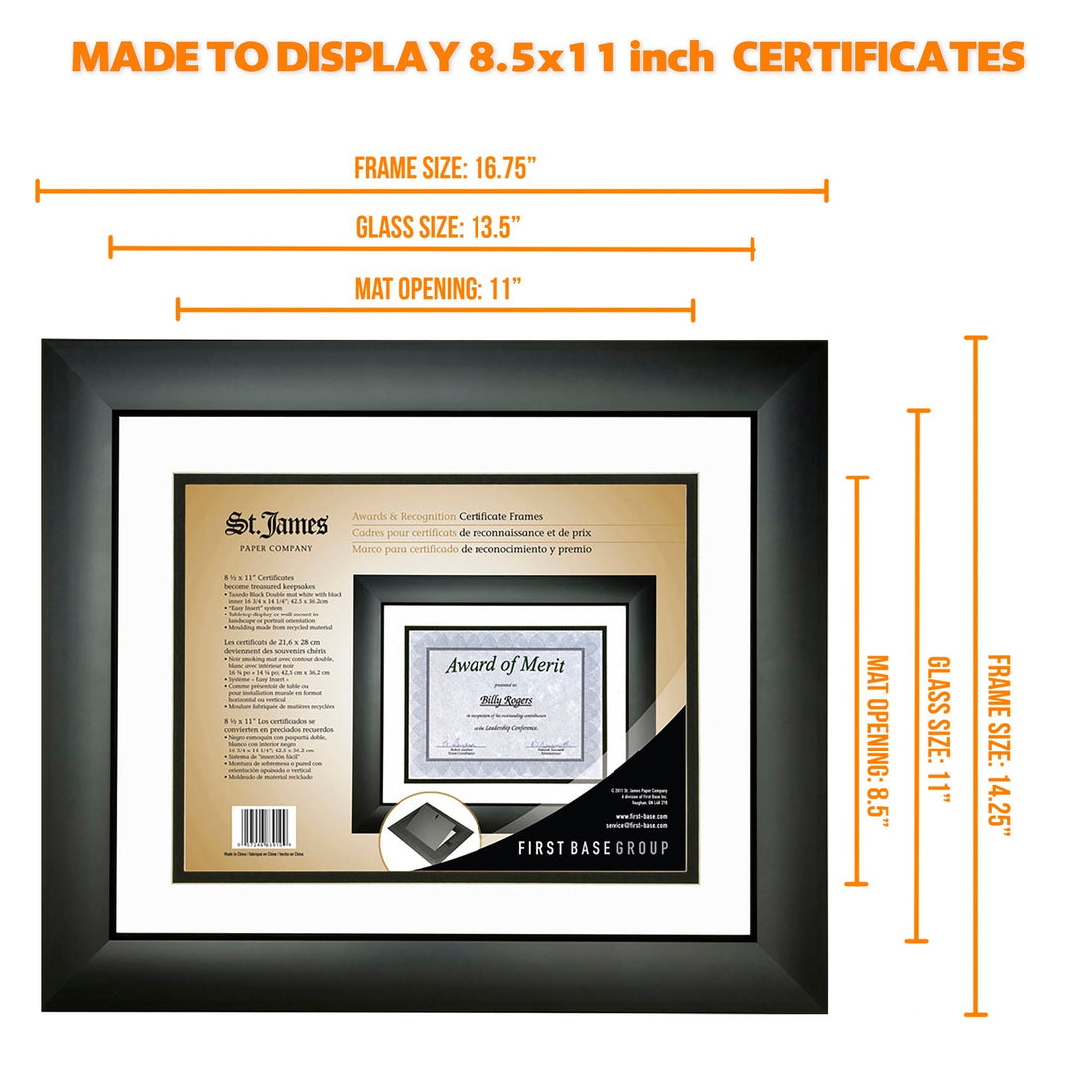 St. James® Certificate/Diploma/Document Frame, 8.5x11", Tuxedo Black with Double Mat White/Black 83910