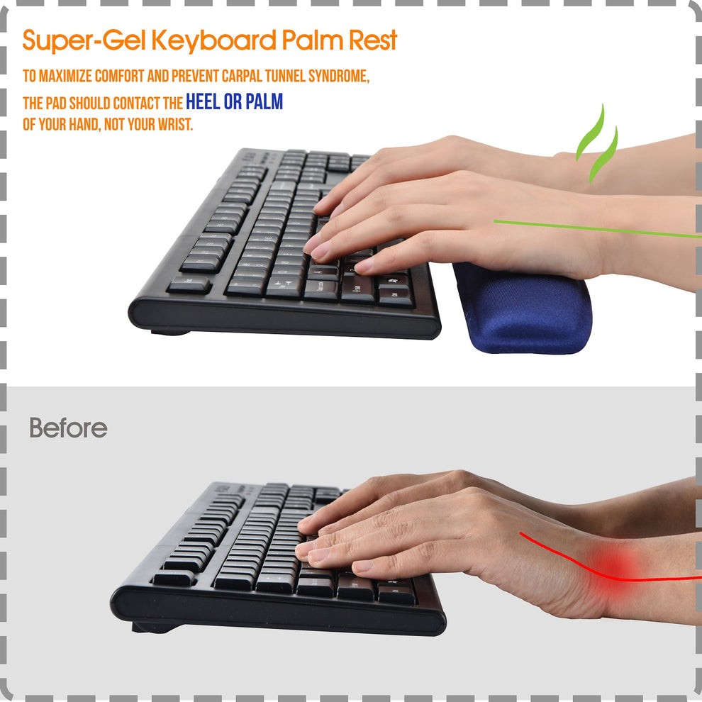 - Keeps wrists comfortably positioned when typing or gaming, preventing wrist pain