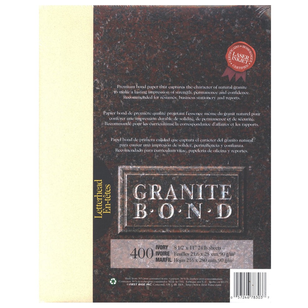 - Premium bond paper that captures the characteristics of natural granite to make a lasting impression of strength, permanence, and confidence