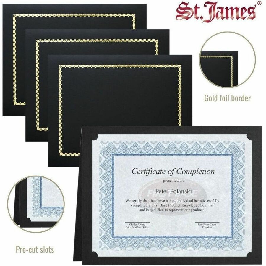 St. James® Classic Linen Certificate Holders with Gold Foil, Black, Pack of 5, 83464