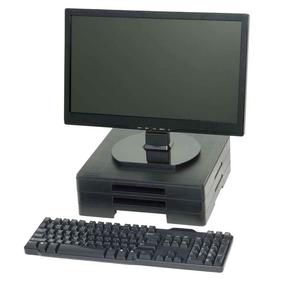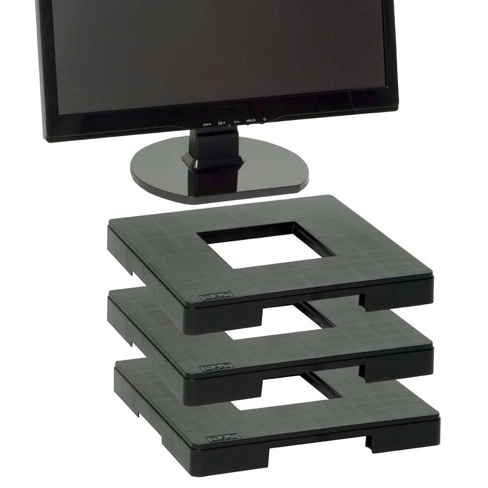 - Heavy-duty stackable riser raises the computer monitor in 1.25" (3.2cm) increments to an ergonomically comfortable height