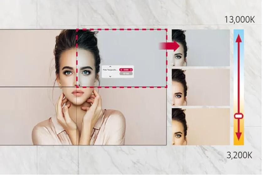 Depending on the content, the color temperature of the display can be easily adjusted in increments of 100K using a remote control.