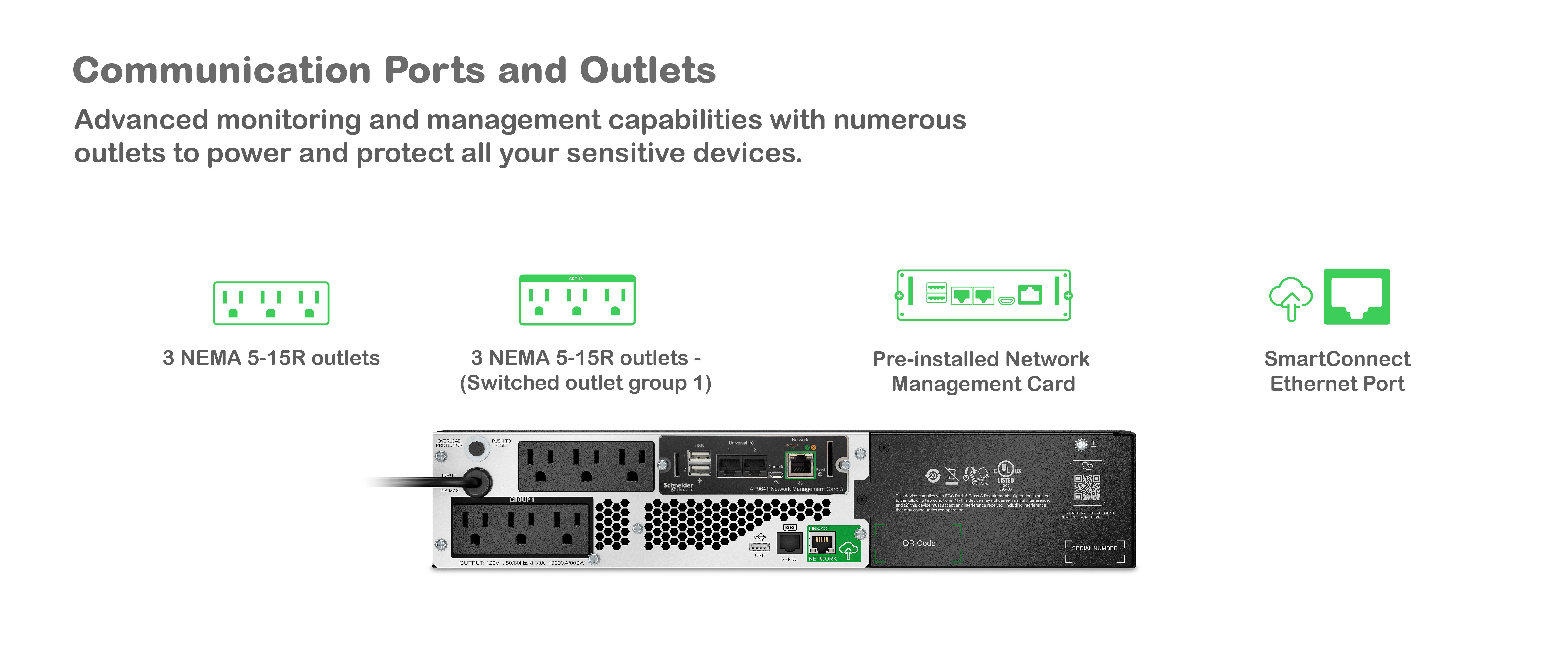 The Smart-UPS Lithium-ion have the AP9641 UPS network management card with environmental monitoring pre-installed.