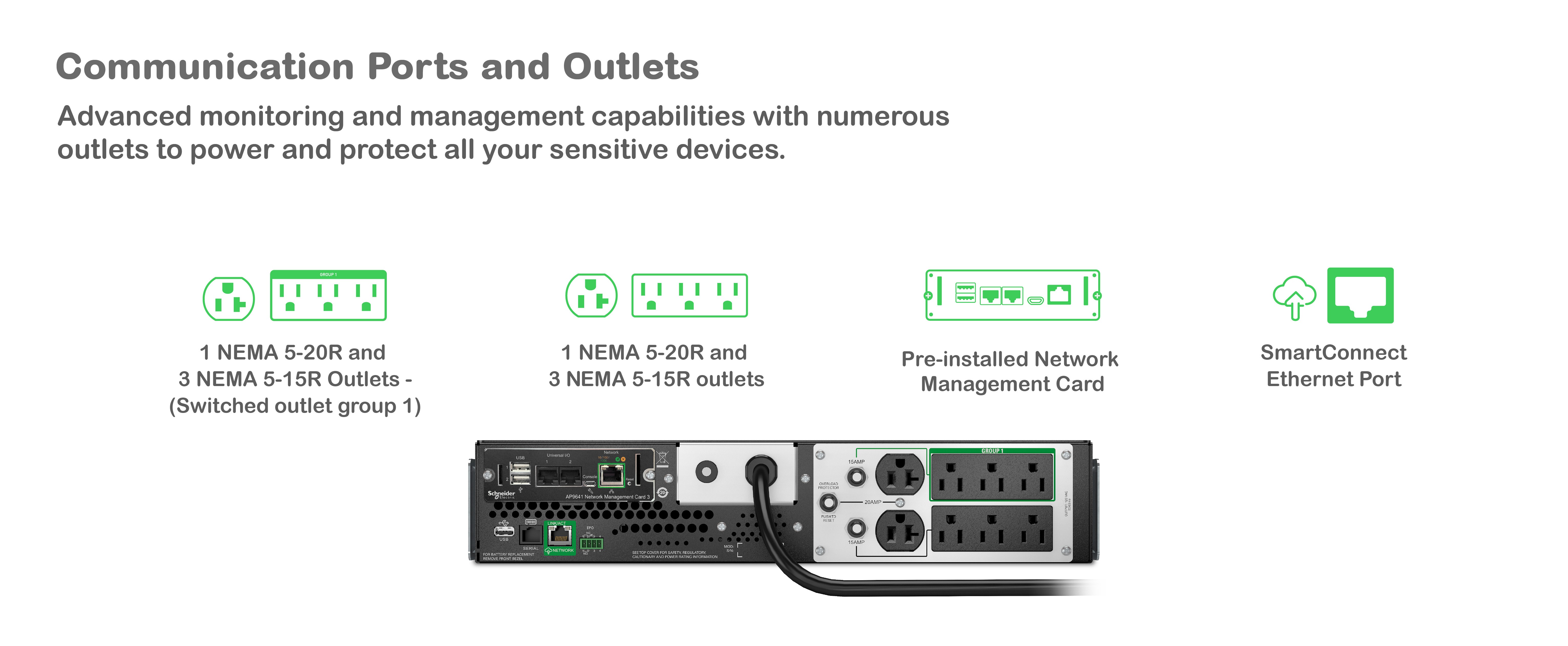 Preinstalled Network Management Card Enables network-based monitoring and management of UPS with a preinstalled network management card. |