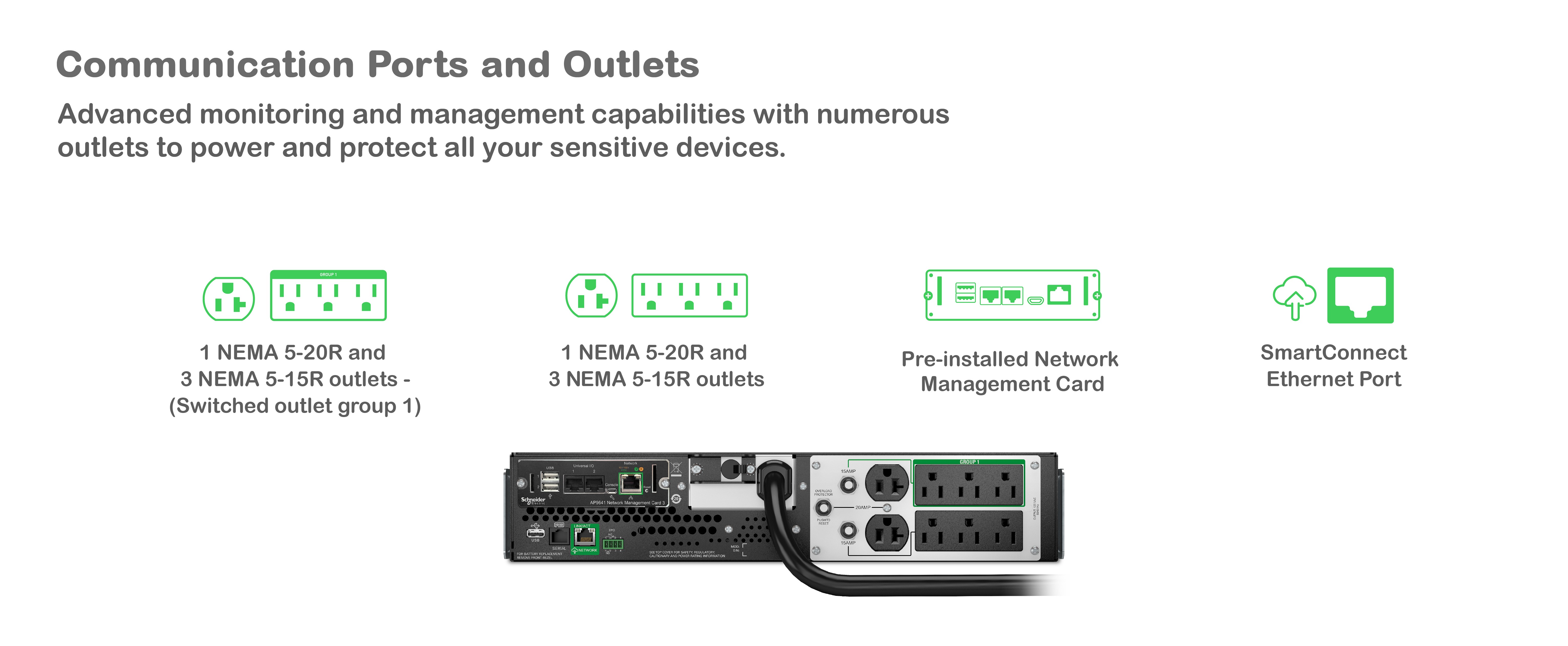 All new devices are on-boarded to the Standard plan with remote power monitoring, UPS and power events, automated distribution of firmware to UPSs with one-click remote installation and downloadable asset and renewal reports. Advanced Plan option provides UPS Outlet Group reboot for remote power cycling of connected IT equipment. Features vary with terms of use.