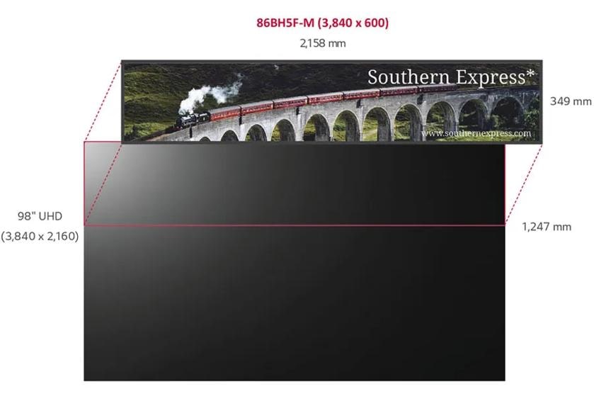 The 86BH5F is the most suitable display for delivering new forms of advertising and multiplexed information in a 58:9 widescreen format.