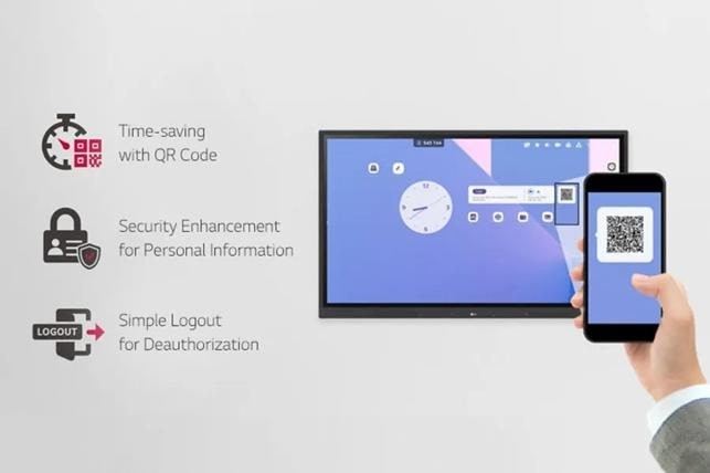The QR code on the home screen reduces preparation time for class by enabling personal device verification. Users can sign up for a variety of apps on the LG CreateBoard® including Google Drive and OneDrive with just one QR verification without any additional login process. Once a lesson is finished, users can simply click the Logout button to disconnect.