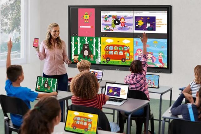 LG CreateBoard supports wireless Bluetooth connections to various devices such as a speaker, mouse, or keyboard, and files can be easily shared from any devices connected to the LG CreateBoard® Share app.² Plus, the CreateBoard's built-in forward facing speakers provide exceptional sound throughout a classroom.