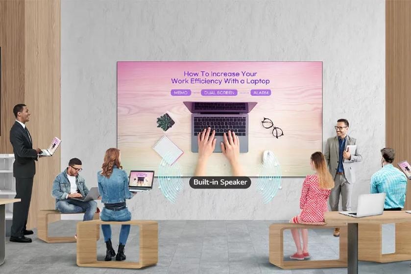 The LAPA series is compatible with LG One:Quick Share*, a wireless screen sharing solution. It helps to simply share one’s personal PC screen to the display with its button and embedded Wi-Fi**, and it can also adjust the basic setting values (volume, picture mode, auto bright, etc.) of the connected display without a remote control.