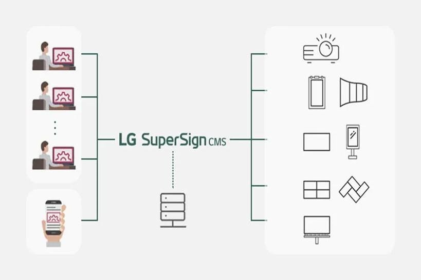 LG SuperSign is a content management software solution optimized for LG webOS signage. It supports multiple displays and accounts where multiple users can easily access the server from pc or mobile device, then manage content creation, editing, scheduling, and distribution.